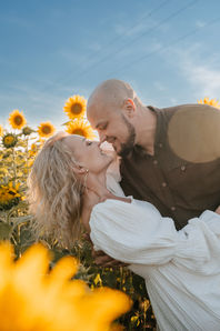 Ta sesja to była prawdziwa eksplozja uczuć i pozytywnej energii! Zakochani po uszy, uśmiechnięci od ucha do ucha, wśród złocistych słoneczników… i z najwierniejszym przyjacielem u boku.